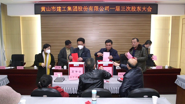 會(huì)上經(jīng)過(guò)審議,表決通過(guò)《黃山市建工集團(tuán)股份有限公司第二屆董事會(huì)、監(jiān)事會(huì)換屆選舉辦法》,選舉項(xiàng)端陽(yáng)、許自兵、葉金發(fā)、萬(wàn)鵬、吳學(xué)武、方哲源、陳德明為二屆董事會(huì)成員;選舉錢國(guó)徽、李丹、孫紅明、蘇國(guó)強(qiáng)、程永華為二屆監(jiān)事會(huì)成員。