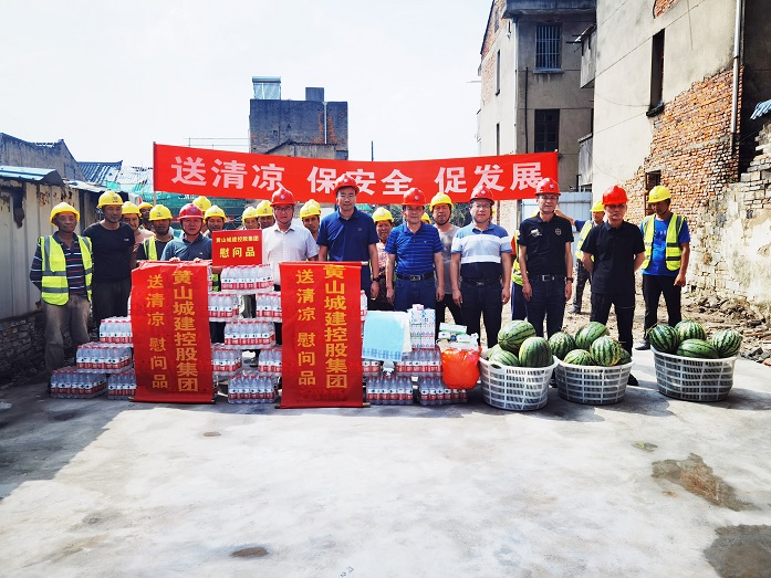 烈日炎炎,氣溫居高不下。為保障項目職工安全健康權益,確保項目安全生產(chǎn)平穩(wěn)推進,8月10日上午,黃山城投城建控股有限公司總經(jīng)理汪國文等一行赴寧國市河瀝文化街區(qū)EPC項目工地開展走訪調(diào)研暨“夏送清涼”慰問活動。黃山建工集團股份有限公司董事長項端陽、總經(jīng)理葉金發(fā)、副總經(jīng)理吳學武陪同調(diào)研慰問。