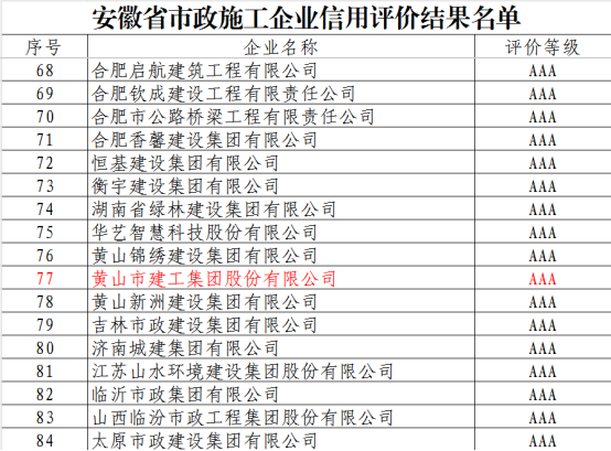 近日,安徽省市政工程協(xié)會(huì)正式發(fā)布《關(guān)于公布2025年安徽省市政施工企業(yè)信用評(píng)價(jià)結(jié)果的通知》。黃山市建工集團(tuán)憑借卓越的綜合實(shí)力、規(guī)范的市場(chǎng)行為、優(yōu)良的工程品質(zhì)及堅(jiān)實(shí)的信用體系建設(shè),成功獲評(píng)最高信用等級(jí)——AAA級(jí)。標(biāo)志著集團(tuán)在誠(chéng)信經(jīng)營(yíng)、履約能力與社會(huì)責(zé)任履行方面獲得了行業(yè)主管部門(mén)與協(xié)會(huì)的高度認(rèn)可,是企業(yè)信用建設(shè)領(lǐng)域的又一重要里程碑。