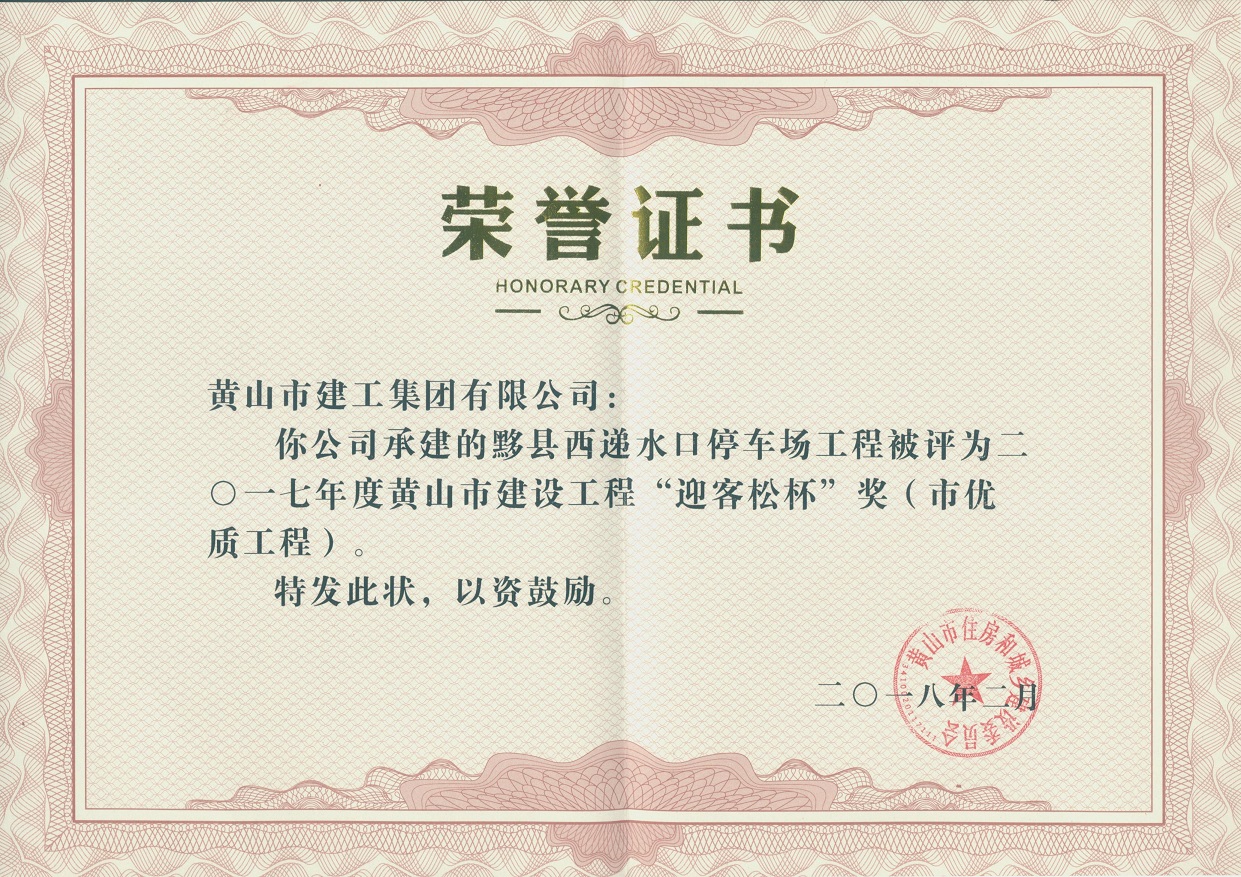 2018年度黃山市建設(shè)工程優(yōu)質(zhì)工程獎(jiǎng)