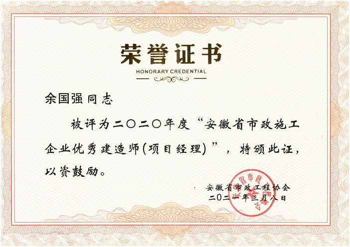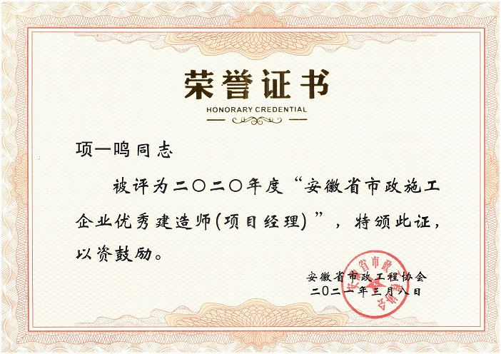 2020年度安徽省優(yōu)秀市政施工企業(yè)