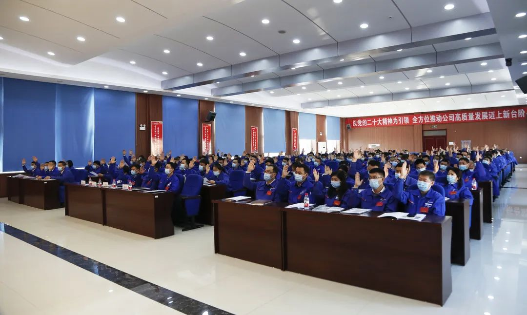 會議要求,全體干部職工,要深入學(xué)習(xí)宣傳貫徹黨的二十大精神,扎實(shí)落實(shí)本次大會精神,切實(shí)把學(xué)習(xí)貫徹成果轉(zhuǎn)化為佳電股份高質(zhì)量發(fā)展的生動實(shí)踐,堅(jiān)定發(fā)展基調(diào),聚焦重點(diǎn)任務(wù),奮力實(shí)現(xiàn)“建設(shè)世界一流特種電機(jī)制造和服務(wù)企業(yè)”目標(biāo);要真抓實(shí)干,細(xì)化措施,確保實(shí)現(xiàn)年度目標(biāo)任務(wù),以飽滿的工作熱情投入工作,始終保持昂揚(yáng)奮進(jìn)的精神狀態(tài),為全面完成年度各項(xiàng)工作任務(wù)做出積極貢獻(xiàn);要攻堅(jiān)克難,砥礪前行,奮力開啟高質(zhì)量發(fā)展新征程,繼續(xù)發(fā)揚(yáng)“艱苦奮斗、不甘落后、勇于創(chuàng)新、超越自我”的奮斗精神,以更強(qiáng)的責(zé)任感和使命感,堅(jiān)定不移地落實(shí)哈電集團(tuán)黨委和佳電股份黨委的各項(xiàng)決策部署,全面做好改革發(fā)展和黨的建設(shè)各項(xiàng)工作,進(jìn)一步推動佳電股份高質(zhì)量發(fā)展邁上新臺階、實(shí)現(xiàn)新跨越。