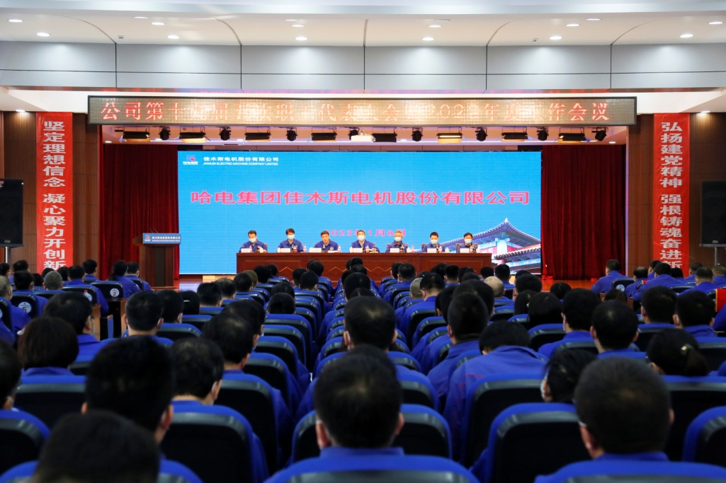 1月8日,哈爾濱電氣集團(tuán)佳木斯電機(jī)股份有限公司(佳木斯電機(jī)廠有限責(zé)任公司)召開了第十九屆五次職工代表大會暨2023年度工作會議。大會以習(xí)近平新時代中國特色社會主義思想為指導(dǎo),深入學(xué)習(xí)宣傳貫徹黨的二十大精神,貫徹落實(shí)哈電集團(tuán)黨委一屆七次全會和哈電集團(tuán)一屆五次職代會精神,表彰先進(jìn),全面總結(jié)2022年度工作,分析研判公司當(dāng)前面臨的形勢,安排部署2023年重點(diǎn)工作,凝聚發(fā)展共識,奮力開啟佳電股份高質(zhì)量發(fā)展新征程。會議由佳電股份黨委副書記、工會主席劉漢成主持。佳電股份領(lǐng)導(dǎo)班子成員及201名職工代表參加會議。