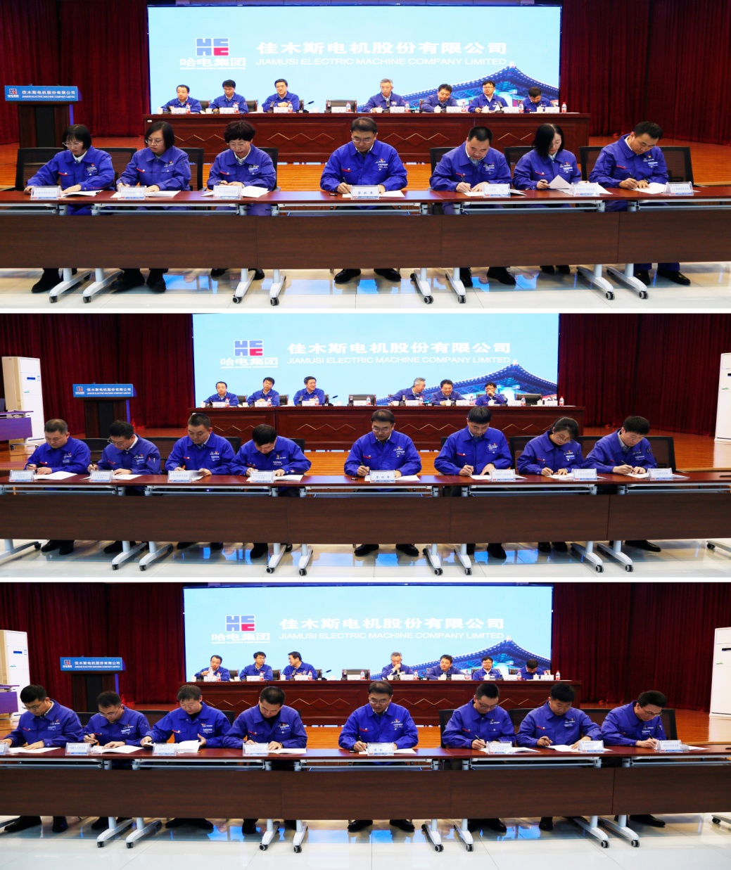 佳電股份中層領(lǐng)導(dǎo)人員、中層助理,黨建工作部、紀(jì)委辦公室全體人員,各直屬黨組織委員、各直屬工會(huì)主席、各直屬團(tuán)組織書記、黨外人士代表以及受到表彰的先進(jìn)集體代表和先進(jìn)個(gè)人等160余人參加會(huì)議。蘇州佳電永磁電機(jī)科技有限公司、先進(jìn)電機(jī)技術(shù)有限公司以視頻會(huì)議形式參加會(huì)議。