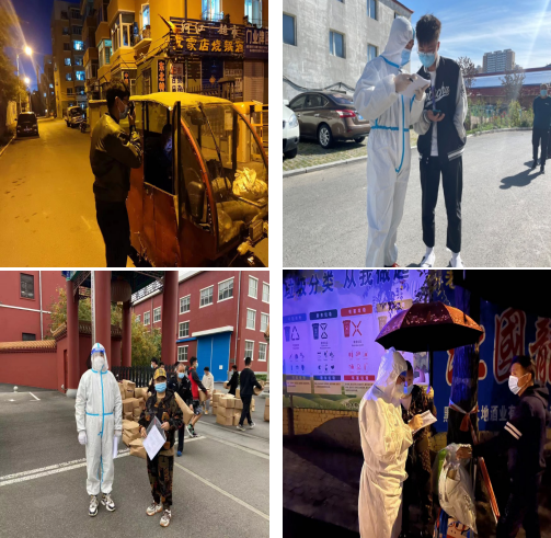 鐘帥每天4點(diǎn)起床,5點(diǎn)開始組織隊(duì)員到食堂為職工做飯,分發(fā)一日三餐,搬運(yùn)蔬菜包,為新入廠職工分發(fā)折疊床以及被褥,到超市選取所需生活物品,帶領(lǐng)防疫工作者“大白”到各個(gè)車間為職工進(jìn)行核酸檢測,從未叫苦叫累;郝健業(yè)主動(dòng)擔(dān)當(dāng)作為,哪需要人手哪就看到他的身影,食堂,超市,搬運(yùn)物資,核酸檢測,經(jīng)常晚上八九點(diǎn)鐘還沒有回寢;關(guān)昊天為保障食堂能按時(shí)出菜,他經(jīng)常半彎著腰清洗大量餐具,直到工作結(jié)束,腰才能勉強(qiáng)直起來,他還積極參加各種義務(wù)勞動(dòng),宿舍樓道里的窗臺(tái),暖氣,窗框,寢室外的垃圾,一號(hào)路兩旁的落葉,都有他干活的身影。馬秋宇在食堂后廚幫忙,兩筐土豆,加上冰冷的水,讓他切完土豆后手都凍得通紅,握刀的手掌還磨出了水泡,但他隔天還是參與了后廚備菜的工作;喬雙露是唯一一個(gè)在食堂后勤幫忙的女生,每天備菜、后廚的衛(wèi)生清潔以及三餐的分發(fā)都有她的身影,她對工作毫無怨言,與男生們一樣默默堅(jiān)持堅(jiān)守。劉成坤有用不完的力氣,搬菜、送餐,他都搶在前面,即使手上和腿上受了傷,他還是每日堅(jiān)持送餐任務(wù);王文旭主動(dòng)承擔(dān)開車運(yùn)飯工作,每日他都提前到食堂取餐,只為了盡早將一日三餐送到各個(gè)車間員工的手上,讓大家吃上熱乎乎的飯菜……