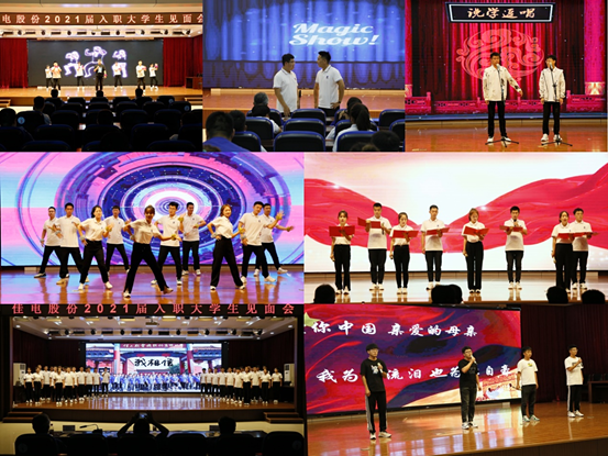 見面交流會(huì)結(jié)束后,2021屆新入職大學(xué)生奉獻(xiàn)了一場(chǎng)精彩的自編自導(dǎo)的演出,有歌曲串燒、動(dòng)人的舞蹈,也有激昂的朗誦、幽默的相聲,還有奇幻的魔術(shù),最后以一首《我相信》表達(dá)對(duì)自己和公司輝煌未來的美好祝愿。