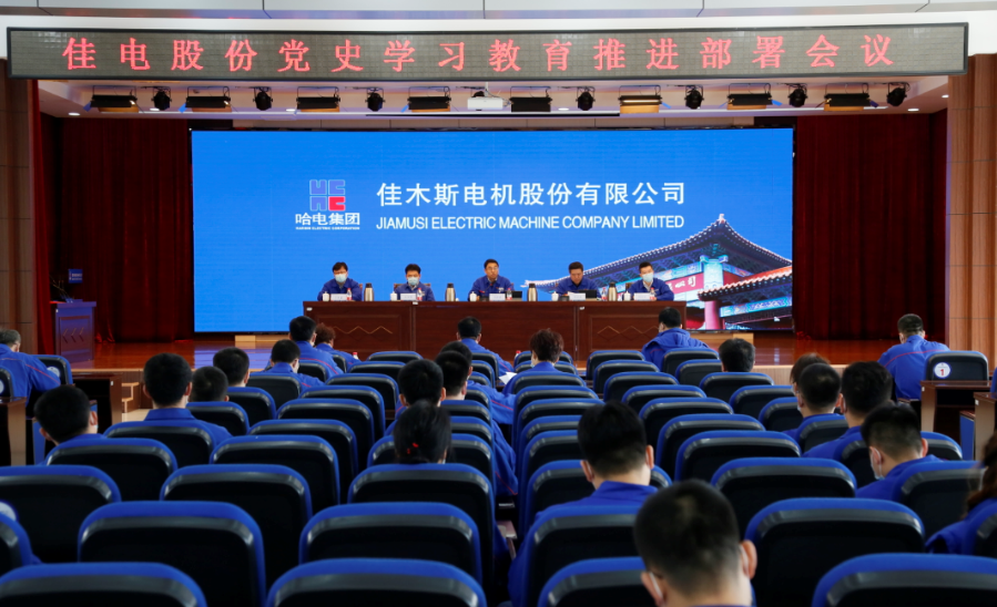 3月17日,哈電集團佳電股份召開黨史學習教育推進部署會議,深入學習貫徹習近平總書記在黨史學習教育動員大會上的重要講話精神,全面貫徹落實集團公司黨委黨史學習教育動員部署會工作要求,對公司黨史學習教育工作進行推進部署。公司黨委書記、董事長、黨史學習教育領導小組組長劉清勇作推進部署講話。公司黨委副書記、黨史學習教育領導小組副組長劉漢成主持會議。