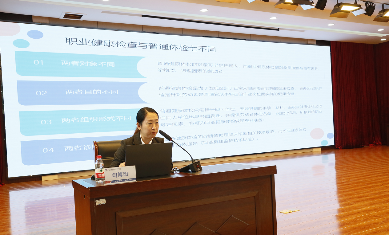 閆博陽(yáng)副主任從《職業(yè)病防治法》宣教、職業(yè)健康檢查與普通體檢的區(qū)別、職業(yè)病科普和新冠疫苗接種知識(shí)四個(gè)部分為職工做了深入淺出的輔導(dǎo)。